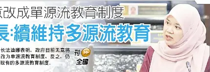 教育部長法迪娜表明,政府目前無意將教育制度更改為單源流教育制度,反之,仍會繼續維持現有的多源流教育制度。